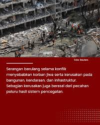 Sejumlah infrastruktur dilaporkan mengalami kerusakan akibat serangan yang terjadi di wilayah konflik. Fasilitas umum seperti jalan, jembatan, jaringan listrik, dan bangunan penting terdampak, sehingga mengganggu aktivitas masyarakat setempat.